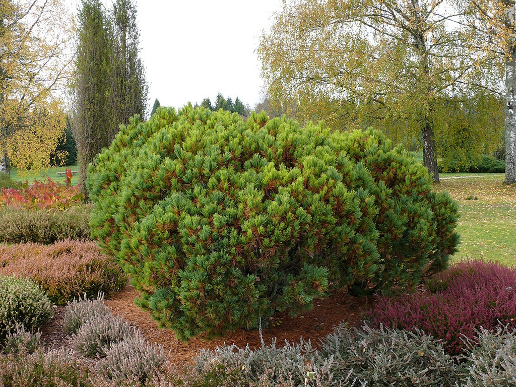 Как и сосна обыкновенная, этот вид зимостоек, засухоустойчив. К составу почвы также малотребовательна, болезнями и вредителями сосна горная не повреждается. Заморозки и снегопады ей также не страшны. Хорошо сочетается при посадке с березами, лиственницами, сосной балканской и елями. Выведено большое количество декоративных сортов.