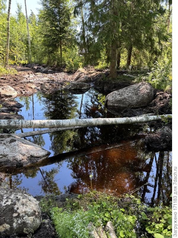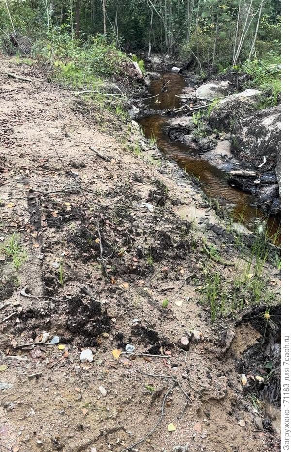 Хотелось бы пояснений, или, лучше, фотографий места стыковки ручья и канавы. У ручья отметки 62,4 низ канавы 62,07. Канава должна быть в воде на 33 сантиметра. А Вы пишите, что канава сухая. Из чего стенки канавы? Если Вы говорите, что кругом песок, и он осыпается, как Вы тогда вырыли канаву?