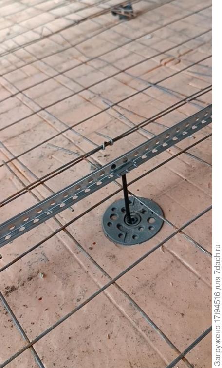 Дальше маяки и сама стяжка. В стяжку помимо сетки хочу добавить фибру и пластификатор.