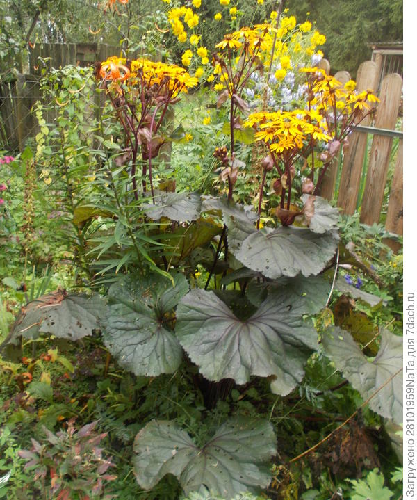 Хотя это растение и морозоустойчивое, его желательно осенью обрезать и укрыть хотя бы сухой листвой. Очень хорошо растет на плодородных почвах, в тени, но может расти на любых почвах. Я посадила бузульник в 2-х местах: в тени и на солнце у забора, он там хорошо растет.