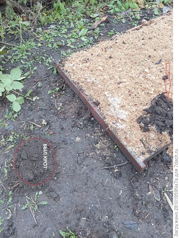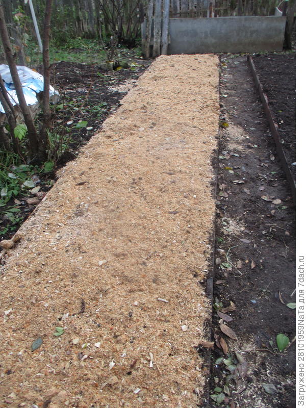 В этот раз посадкой чеснока занимался муж. Он изъявил желание и посадил грядку, замульчировал ее опилками.