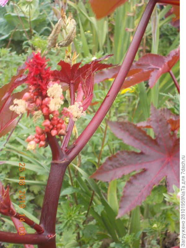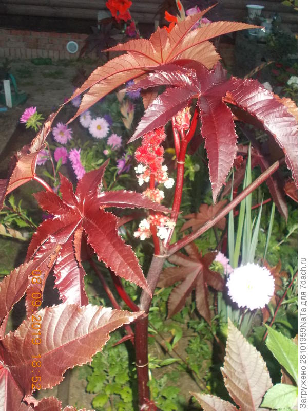 Мне нравится выращивать клещевину 'Казачка'. Она очень красиво смотрится и привлекает внимание своими необычными листьями и цветками. Когда клещевина растет одна, она похожа на тропическое дерево. Каждое растение красиво по-своему. Несмотря на то, что клещевина ядовита, ее стоит выращивать в своем саду. Она вас обязательно отблагодарит своей красотой!