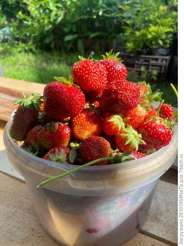 Ну, а ягодный сезон клубники в этом году начался довольно успешно. Была собрана первая часть ягод.