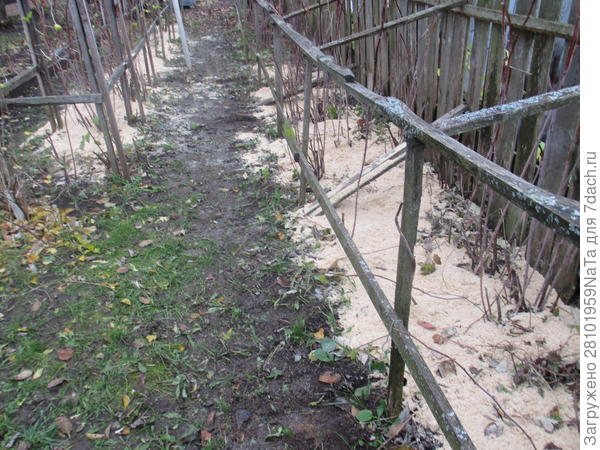 Опилки кладем сверху опавших листьев и остатков травы, все это хорошо перегниет на следующий год и отдаст свои полезные вещества нашей малине.