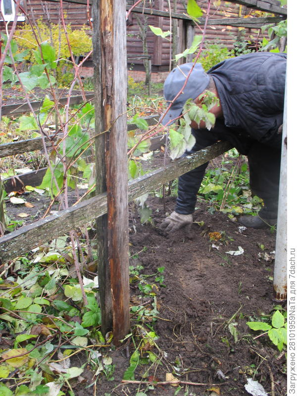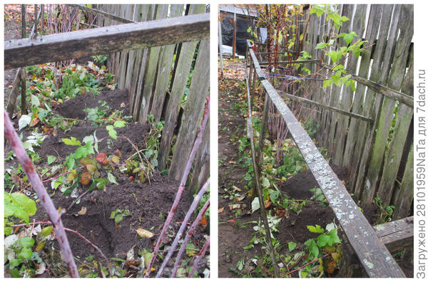 Поэтому осенью мы всегда стараемся подготовить ее к следующему сезону. Обычно я вырезаю старые ветки и обрезаю высокие ветки малины, примерно чтобы они оставались 1,5-1,7 м. Соседский забор примерно 1,6 м высотой, стараюсь, чтобы кусты малины были при обрезке не выше забора.