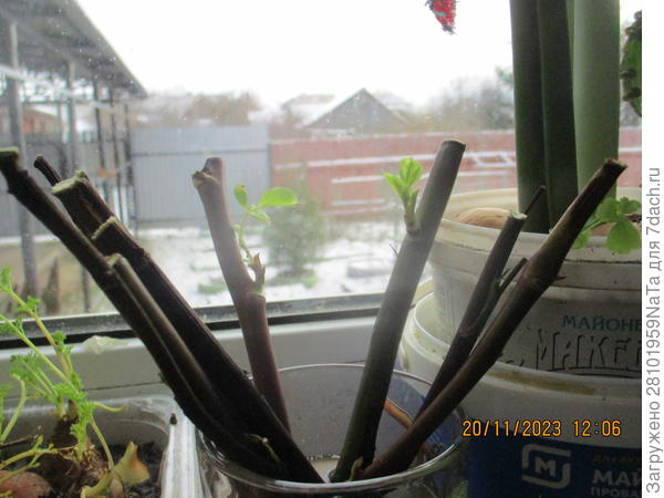 А еще этой осенью я попробовала укоренить черенки роз дома. Получилось так, что мне подарили в октябре букет роз, и я их решила начеренковать. Из каждой веточки сделала по 3 черенка и поставила в воду с «Корневином». Через 2 недели черенки дали новые листья. И что же теперь с ними делать?