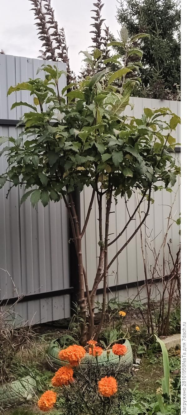 Осенью я ее уже обрезала побольше, убрала все нижние листья. Она выглядела вот так: