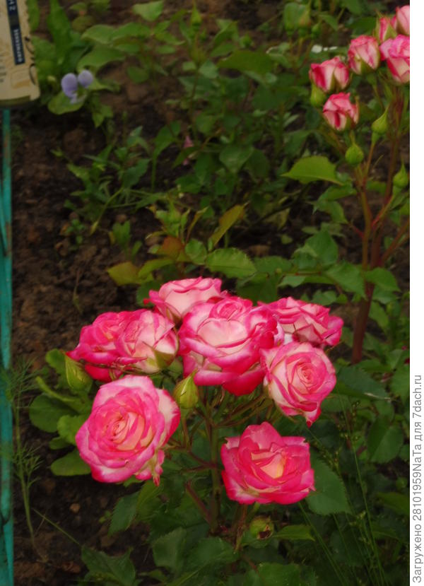 По виду кусты отличались друг от друга. Знакомая занимается розами давно, поэтому многие сорта может определить по цветку. Она сказала, что выбирала для меня разные сорта. Часть названий я записала, но, к сожалению, не все. Все кусты прижились хорошо и в первый год сразу же зацвели. И как зацвели!!! Я была на седьмом небе от счастья, это было восхитительно! Одна из узбекских красавиц — 'Конфетти' (https://7dach.ru/28101959NaTa/bespodobnaya-roza-konfetti-confetti-259392.html).
