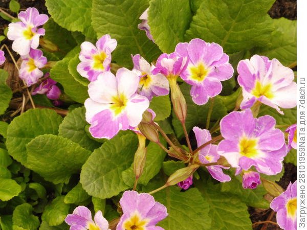 Решила я сделать цветник мечты. В грядку к розам высадила по краю и в центре, между кустами, примулу разных оттенков. Весной она очень хорошо цветет, пока розы еще только набирают бутоны, а затем своими листьями защищает землю от высыхания.