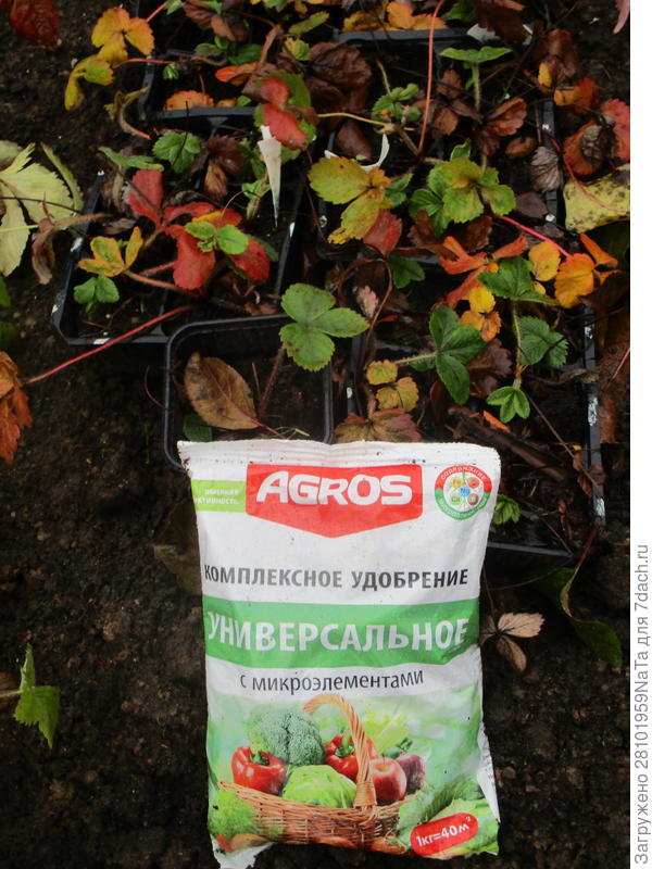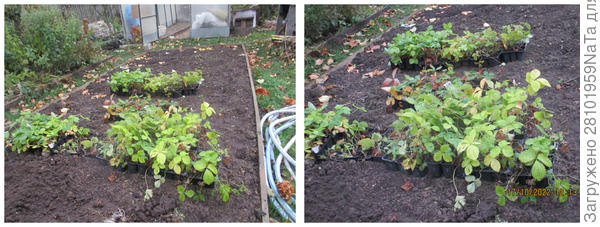 Делаю в середине сентября канавку на грядке, проливаю хорошо водой и ставлю в эту канавку кассеты или другие емкости, в которых растет садовая земляника. В этом году осень была теплая, часть земляники в кассетах прикапывала на зимовку уже в октябре.