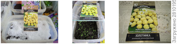 Посев земляники начинается в январе. Семена сею в грунт, который делаю обычно сама. Грунт для посадки земляники легкий, в нем большая часть торфа (50%), а остальное — садовая земля (30%) и песок (20%). Сыплю грунт в емкость, затем на грунт кладу снег, а сверху раскладываю семена земляники, закрываю верх емкости пищевой пленкой и ставлю на окно, иногда открываю пленку и проветриваю емкость с семенами. Прорастают семена земляники, посеянные таким способом, хорошо.