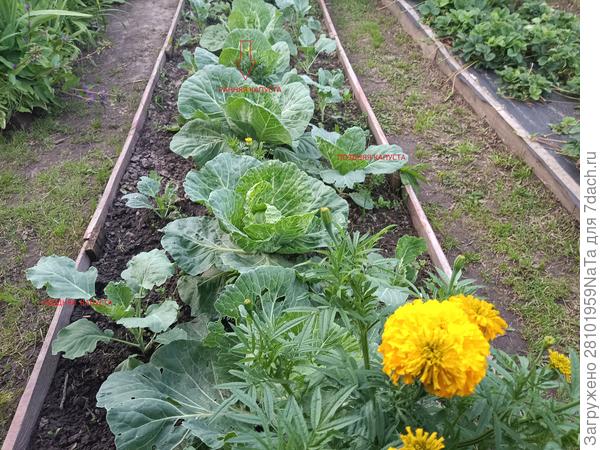 В начале мая я высаживаю в середину грядки раннюю капусту, а уже после 20 мая, когда она окрепнет и пойдет в рост, высаживаю по краям позднюю.