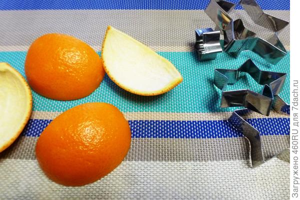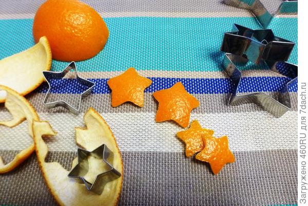 Мандарины или апельсины едим аккуратно, стараясь оставлять большие куски кожуры. Из всех форм для печенья мне нравятся звезды, у меня пять размеров.