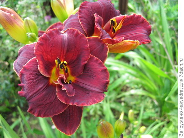 'Найт Эмберс' относится к тетраплоидам, то есть у него в 2 раза больше хромосом, то есть можно получить в селекции большое разнообразие окрасок, да и устойчивость к неблагоприятным условиям выращивания должна быть выше. Но с последним утверждением я не согласна, как показывает мой опыт, такие гибриды более восприимчивы к гнили корневой шейки. Но об этой «болячке» расскажу на примере другого моего лилейника. Надо отдать должное, 'Найт Эмберс' оказался настоящим стойким рыцарем.