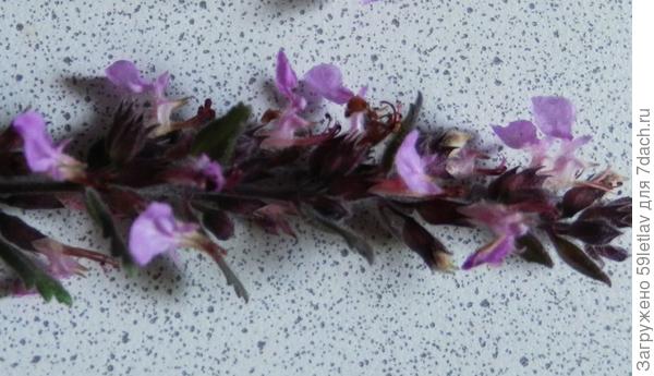 2 растение — дубровник обыкновенный (Teucrium chamaedrys) из семейства Яснотковых или Губоцветных (Lamiaceae). О нем на сайте еще есть информация вот здесь: Садовый винтаж снова в моде: возвращение прекрасных дубровников. Он высотой 10-30 см с опушенными изогнутыми бледно-зелеными побегами, многочисленными эллиптическими или продолговатыми листьями, суженными в черешок, с 4-9 зубчиками с каждой стороны листовой пластинки. Цветки по 2-5 в ложных мутовках, собранных в кистевидное соцветие, с пурпурным венчиком. Растение имеет приятный запах. Плоды — коричневые орешки, созревают в августе-сентябре. Это пряно-ароматическое растение. Медонос. Дубильное: корни используют для дубления кожи. Красильное: корни дают желтую, коричневую, зеленую краску. Весьма декоративен. В гомеопатии используют эссенцию из свежих листьев.