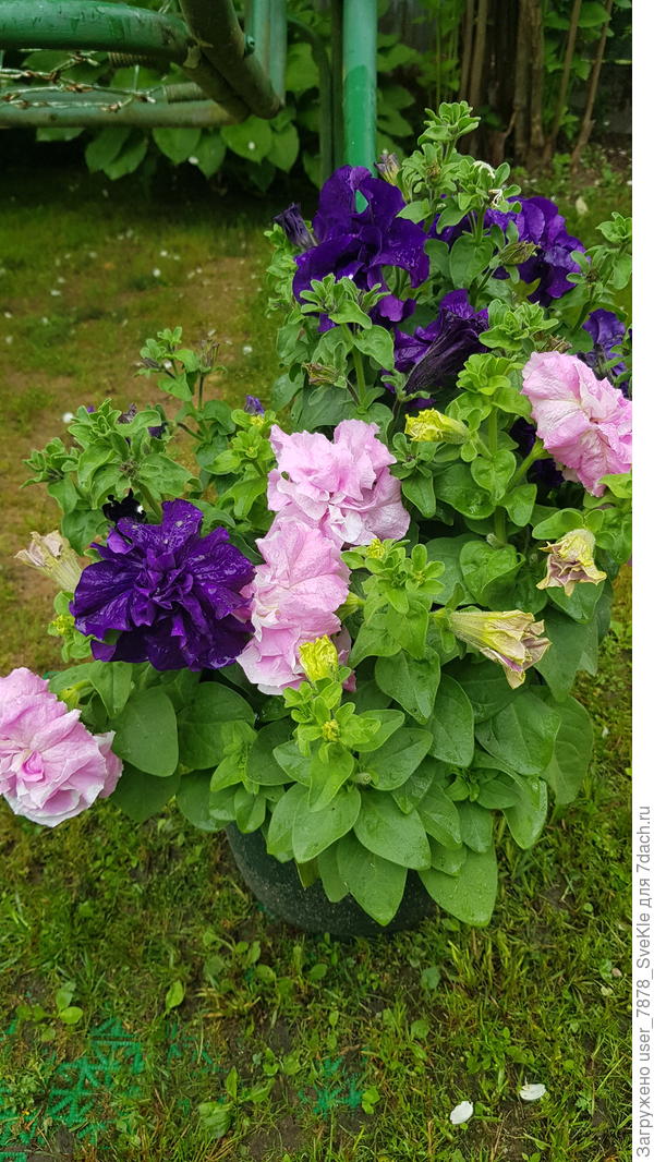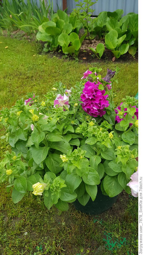 После высадки раз в 10 дней цветы подкармливались Фертикой и ЖКУ «Цветущий рай». По максимуму убирались сухоцветы. Не прищипываю. К сожалению, «Фреш Вейв Перли Шейдс» (Биотехника) оказалась вовсе не каскадной, но цвела милыми розовыми цветами. И «Синий водопад» (Аэлита) после того, как набрал множество бутонов зачах прямо на глазах. Не сложилось и с Сферикой от Биотехники. Все остальные петунии стойко выдержали иссушающую жару, суточные ливни и порадовали цветением вплоть до октября месяца.
