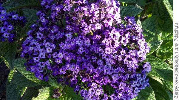 Многолетник, выращиваемый в культуре как однолетник. Привлекательное густо ветвящееся растение до 45 см высотой с крупными цветками. Листья овальные, слабоопушенные. Цветки темно-синие мелкие душистые, собраны в щитковидные соцветия диаметром 10-15 см. Цветет все лето обильно и продолжительно. Используют для озеленения балконов, в качестве горшечной культуры и в ковровых цветниках. Гармонично сочетается с бархатцами, вербеной, петунией, сальвией.