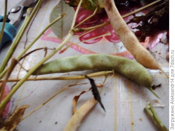 Вместо испанской белой зерновой фасоли в стручках обнаружились такие же по размеру зерна, но необыкновенной фиолетовой окраски. Спаржевой либо иной зерновой рядом не росло: ближайшие посадки в 70 м.