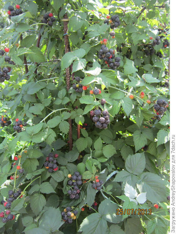 — А вот ежемалина на то и гибрид, что она унаследовала от ежевики способность размножаться и черенками. Так что если говорить о ежемалине, то можно и верхушки прикопать, и черенками размножить. А тут результат такого размножения.