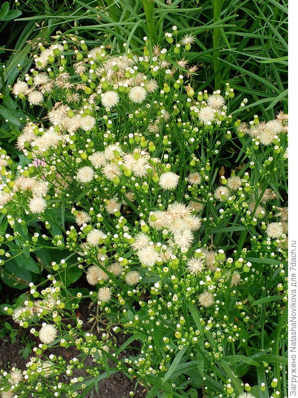 Мелколепестник однолетний семенами мусорит, но не изобильно. У меня в прошлом году был 1, а в этом уже 5, симпатичные.