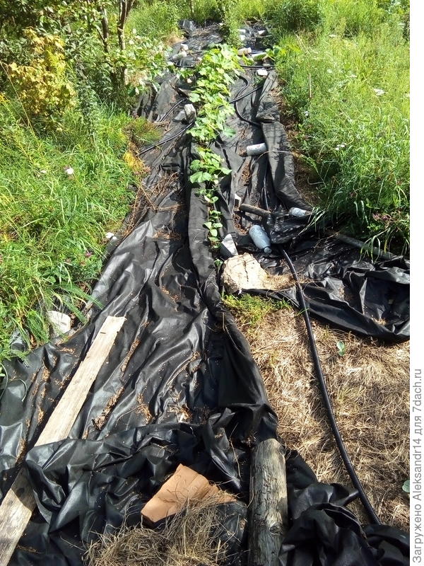 Укрывной материал подкручиваю по бокам, в эти места пересаживаю тыквокабачки.