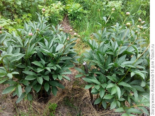 Пионы в стадии бутонизации. Пересадка пионов (в отличие от ирисов не совсем удачна).