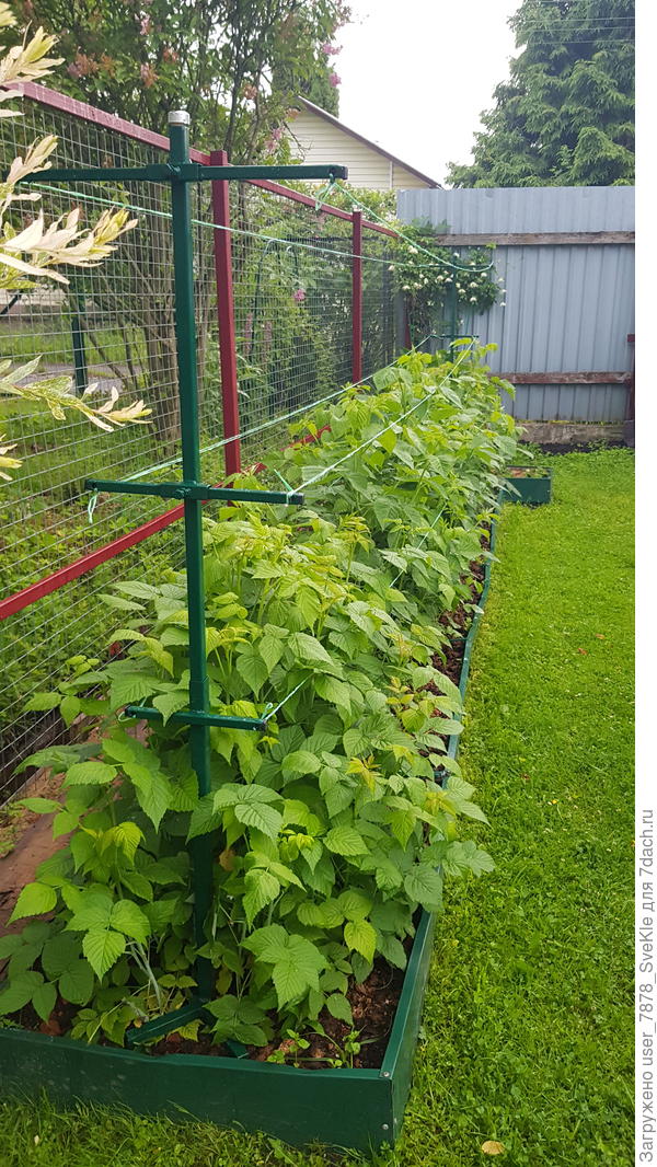 У соседей малина растёт в одну линию вдоль забора, им так удобнее. Они тоже убирают ненужные отростки.
