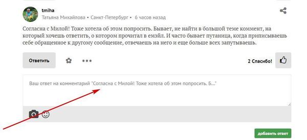 Ответ касается предложения Евгении: «Меня немного напрягает отсутствие возможности повернуть своё фото в комментарии и в дневнике».