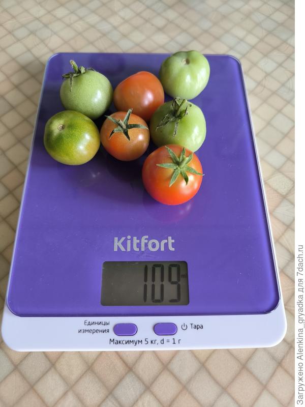 Томат в целом понравился. Вкусника полностью оправдала свое название. Томаты сочные, сладкие, как конфетки, очень понравились. Вес томатика от 25 до 35 граммов.