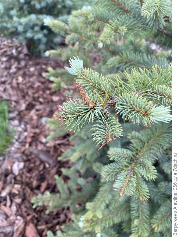 Добрый день. Подскажите. Борюсь за елочку второй год. В прошлом году начала буреть, думала — от нехватки воды, но после месячного полива все ухудшалось. Осенью обработала от шютте и подкормила. В том году заметила вот это на коре, но не придала...