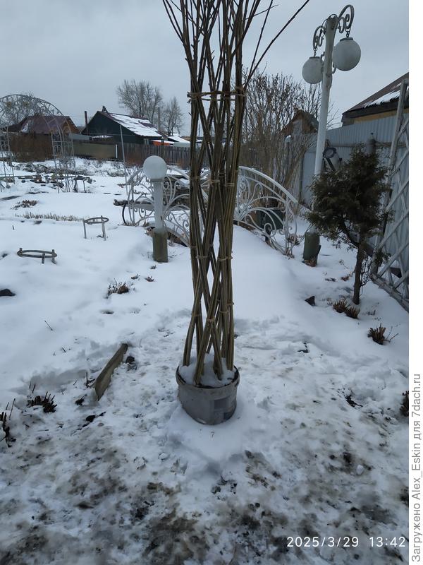 Ну, а пока в планах съездить ещё разик на локацию, пока тропки не оттаяли и не раскисли, нарезать прутьев ещё на деревце поменьше. Стоять будут в вёдрах, в сыром месте, до укоренения. Кстати, черенки ивы 'Американка' продаются как на маркетплейсах, так и на Авито. В Иркутске за небольшие деньги предлагают как готовые прутья для плетения (разной длины, по 100 штук), так и черенки для самостоятельного выращивания ивы на участке.