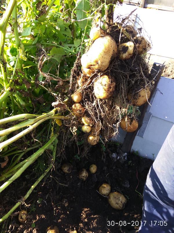 А осенью остается только выкопать. На такой участок рассаживаю 3,5 ведра картофеля. Урожаи не обижают — вот в этом сезоне накопала 52 ведра, из низ 2 ведра было мелкой.