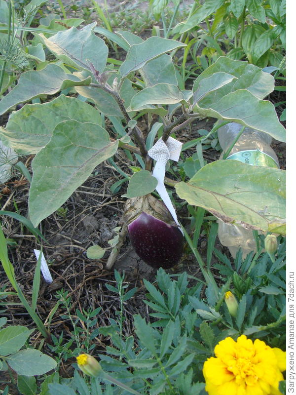 Конечно, я сделала несколько «промахов» при выращивании баклажана. Надо было сразу, в июне, дать большую дозу подкормок, гораздо больше, чем просто бактерии с настоем травы, ведь до меня на этом участке выращивались растения без каких-либо улучшений для почвы, без внесения органики. Зато как интересно было наблюдать за 2 летней дочкой, которая важно ходила между грядками и, показывая на баклажаны, говорила, что это баклажан. Причём на одной грядке росли и белые, и полосатые, и обычные фиолетовые баклажанчики.