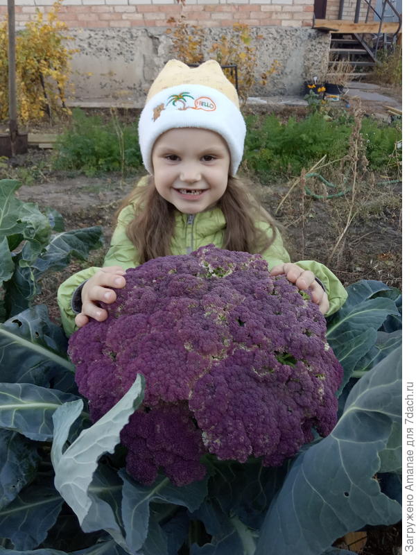 Сентябрь принес прохладу, но не дожди, умеренная температура в +20 просто не позволила мне завершить сезон. Я продолжала поливать и подкармливать своих приверед. И вот, к началу октября на одном кусте появился кочанчик. Маленький фиолетовый комочек. Прошел еще месяц.