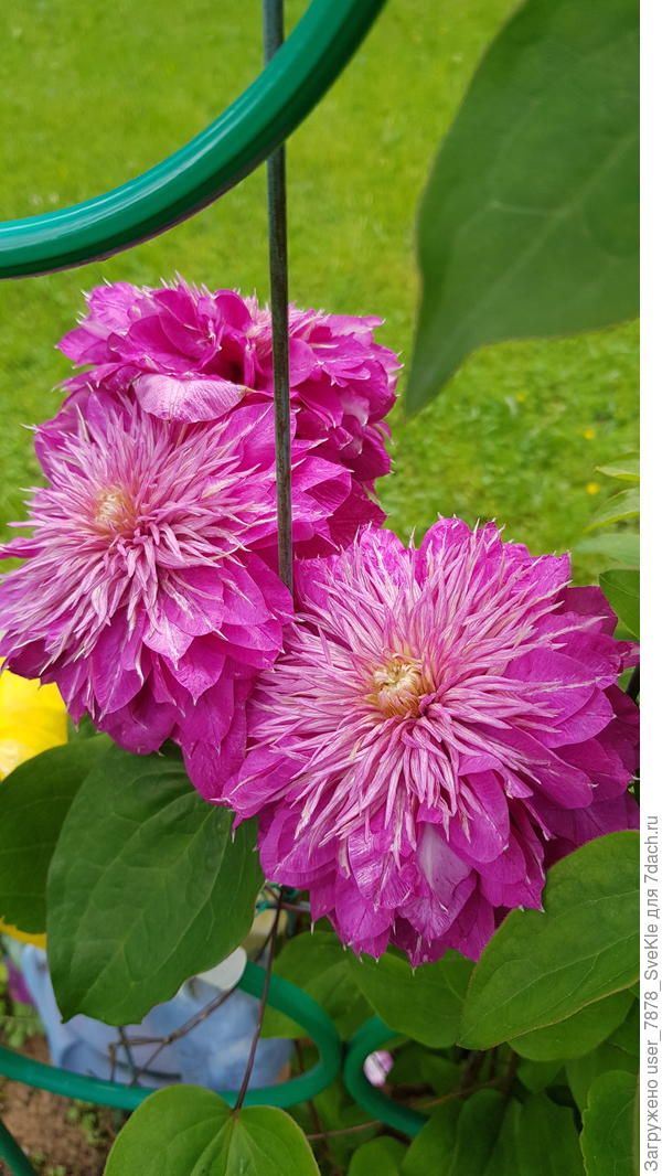 Махровые клематисы лучше рассматривать с близкого расстояния