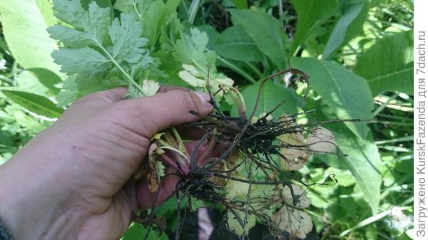 Неужели вот такие мелкие корни моют, сушат, а потом используют как приправу? Но это же издевательство, не иначе… Надергал не один десяток этого «угощения» — корни почти везде калечные, мелкие, тоненькие, их много, при вырывании и даже при выкапывании отрываются… В общем, дичь просто. Или их надо осенью заготавливать (может, к тому времени подрастут, толще станут"?