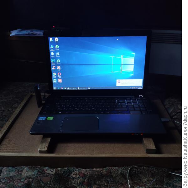 Иду снова в свою мастерскую. Из старых дубовых реек делаю подставку под ноутбук с вентилятором, который будет работать от порта USB. Значит, теперь компьютер не перегреется, не случится замыкание или пожар. Основная платформа подставки поставлена под наклоном. И ноут, ложась на такую подставку, никогда не упадет, он зафиксирован высокими бортиками.