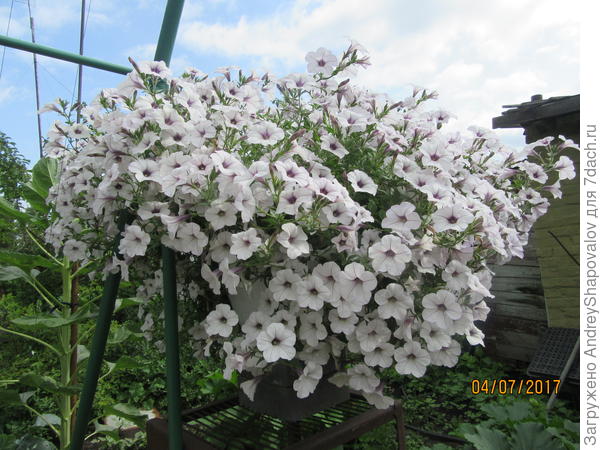 Петуния ампельная гибридная Tidal Wave F1 SILVER. Выращивание в вазонах. Цветение. Фото