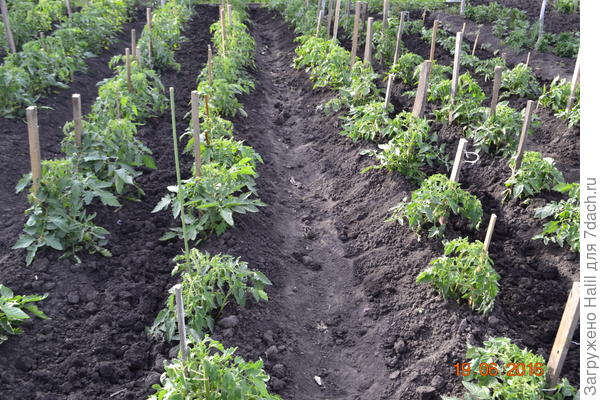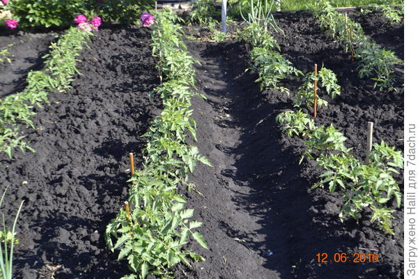 Помидоры не поливаю под корень, а поливаю по бороздкам.