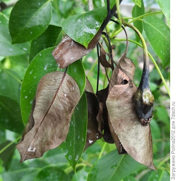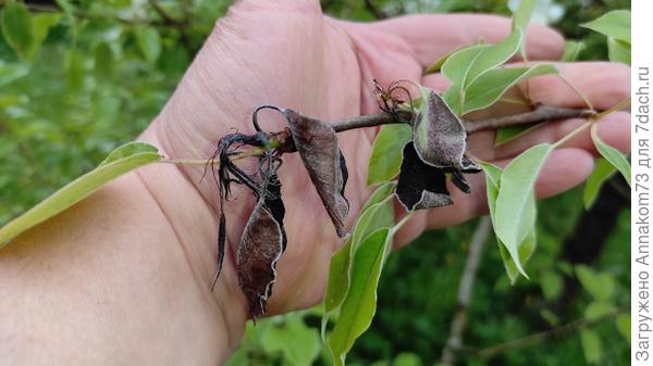 В тот год когда обработала не было почернения. И в прошлом году все хорошо было до конца лета и вот буквально за сутки целая ветка груши почернела и листья и плоды.