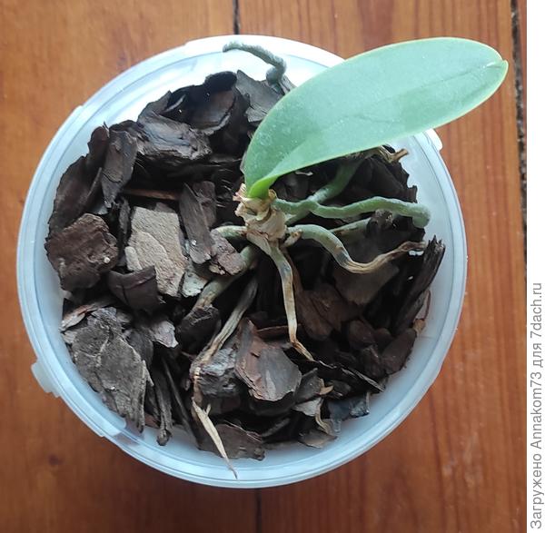 В качестве грунта для орхидеи я предпочитаю брать только кору, без всяких добавок (торфа, кокоса, мха). Кору беру крупную, её легко поломать кусочками с помощью плоскогубцев. Кору до посадки предварительно заливаю кипятком. Можно прогреть в духовке. Но мне больше нравится кипяток.