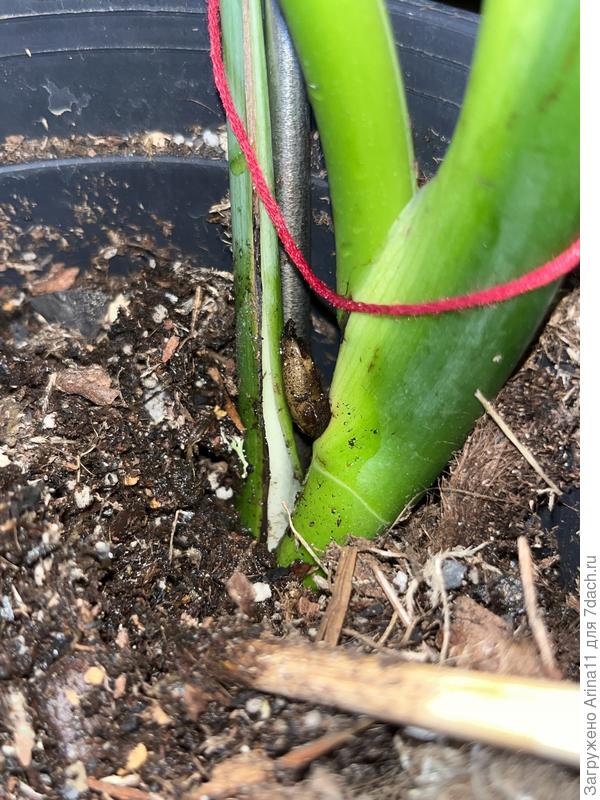 Обрезала я, значит, пожелтевший лист монстеры. Не уверена, что сделала это правильным образом. После этого я заметила изменения у стебля с обрезкой: он значительно потемнел, а также снизу он прямо-таки немного почернел. Стебель все еще твердый....