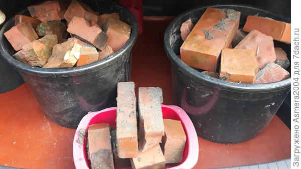 Завезли землю. Дальше мы отправились за битым кирпичом. Взяли две огромные корзины и на машине отправились на поиски. Найдя небольшую свалку, набрали боя. Доверху этим боем наполнили свои корзины. Машина даже просела, тяжело и ей было от нашей затеи.