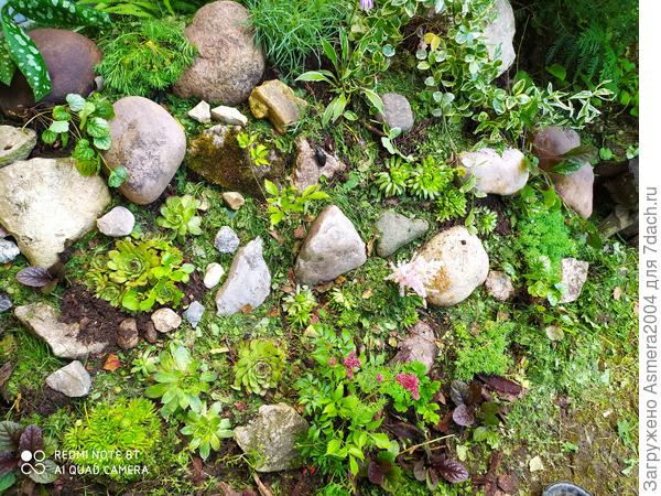 Небольшую астильбу, хосту, тимьян, очиток, барвинок, гвоздику-травянку, ползучку живучую, молочай, молодило, папоротник.