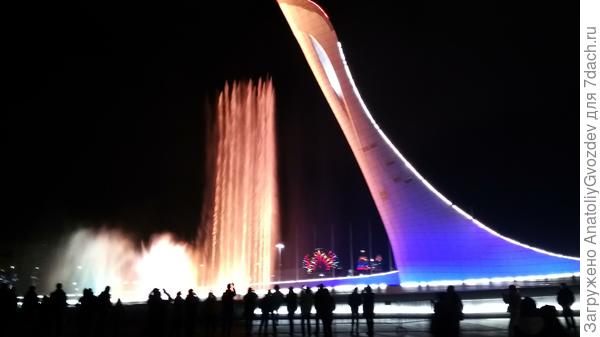 Заодно погуляли по Олимпийском парку, пройдя его пешком насквозь, потом гуляли по набережной, а вечером любовались фонтанами со светомузыкой.