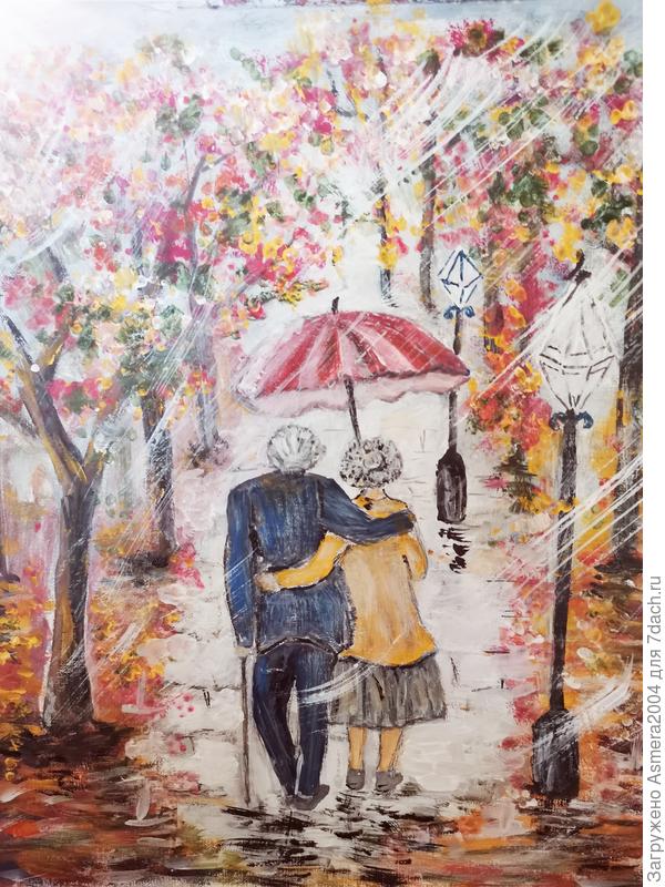 Для своего мужа сегодня закончила серию картин «под зонтом». А что вы дарите в это день своим любимым? И что хотели бы получить в подарок вы в это день?