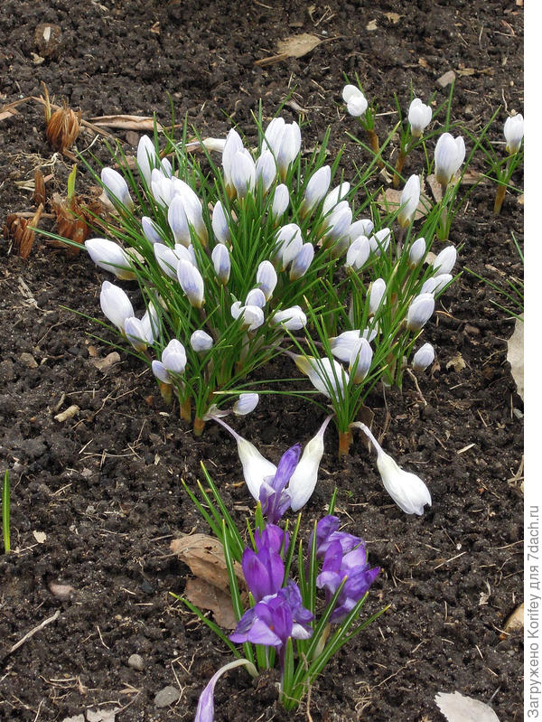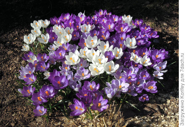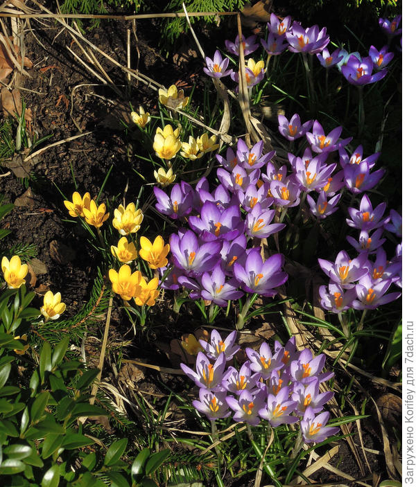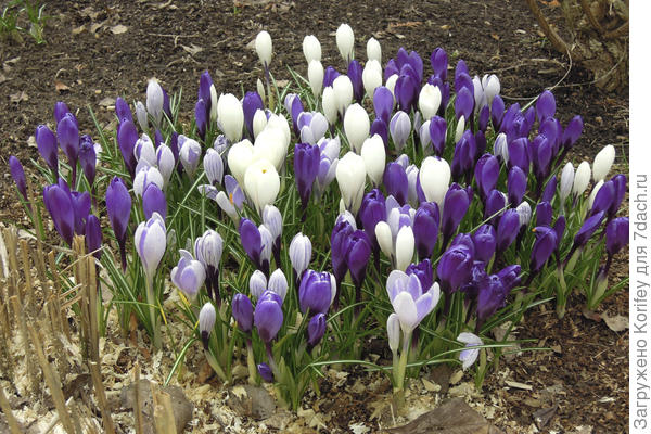 Очень хорошо сажать крокусы вдоль бордюра или раздела клумбы и газона