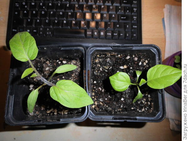 Слева помидор (с запахом, особенно, если лист потрешь), справа баклажан.