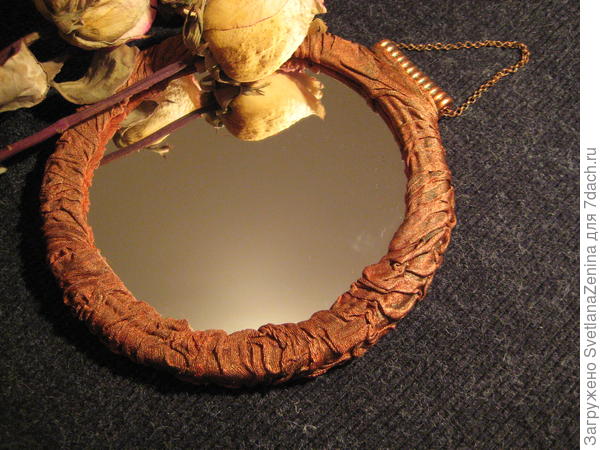 Я колготками только один раз декорировала, скромненько. Рамку у пластмассового зеркала декорировала.