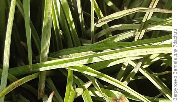 Длина листьев пока не более 15 см. Эта осока у меня с весны. Так что, думаю, листья такие и есть, а растёт она только в ширину